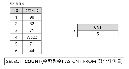COUNT 함수를 이용하면 행의 수를 셀 수 있다. 이 때, NULL 값의 포함여부/ 중복 포함 여부에 따라 함수 사용이 달라질 수 있다.