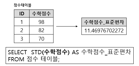 - MySQL에서는 STD함수와 STDDEV 모두 같은 기능으로 사용 가능