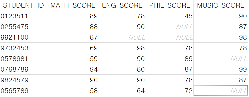 예제 (테이블: STUD_SCORE)