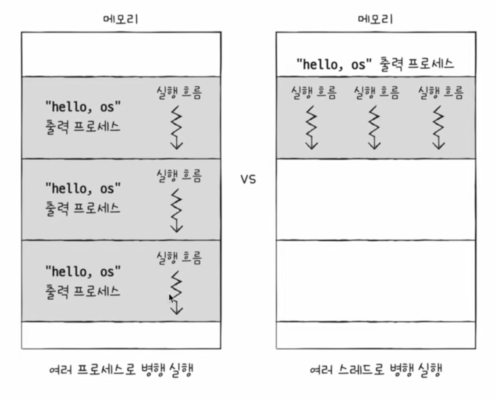 동일한 작업을 수행하는 단일 스레드 프로세스 여러개 실행 vs 하나의 프로세스를 여러 스레드로 실행하면 어떤 차이가?