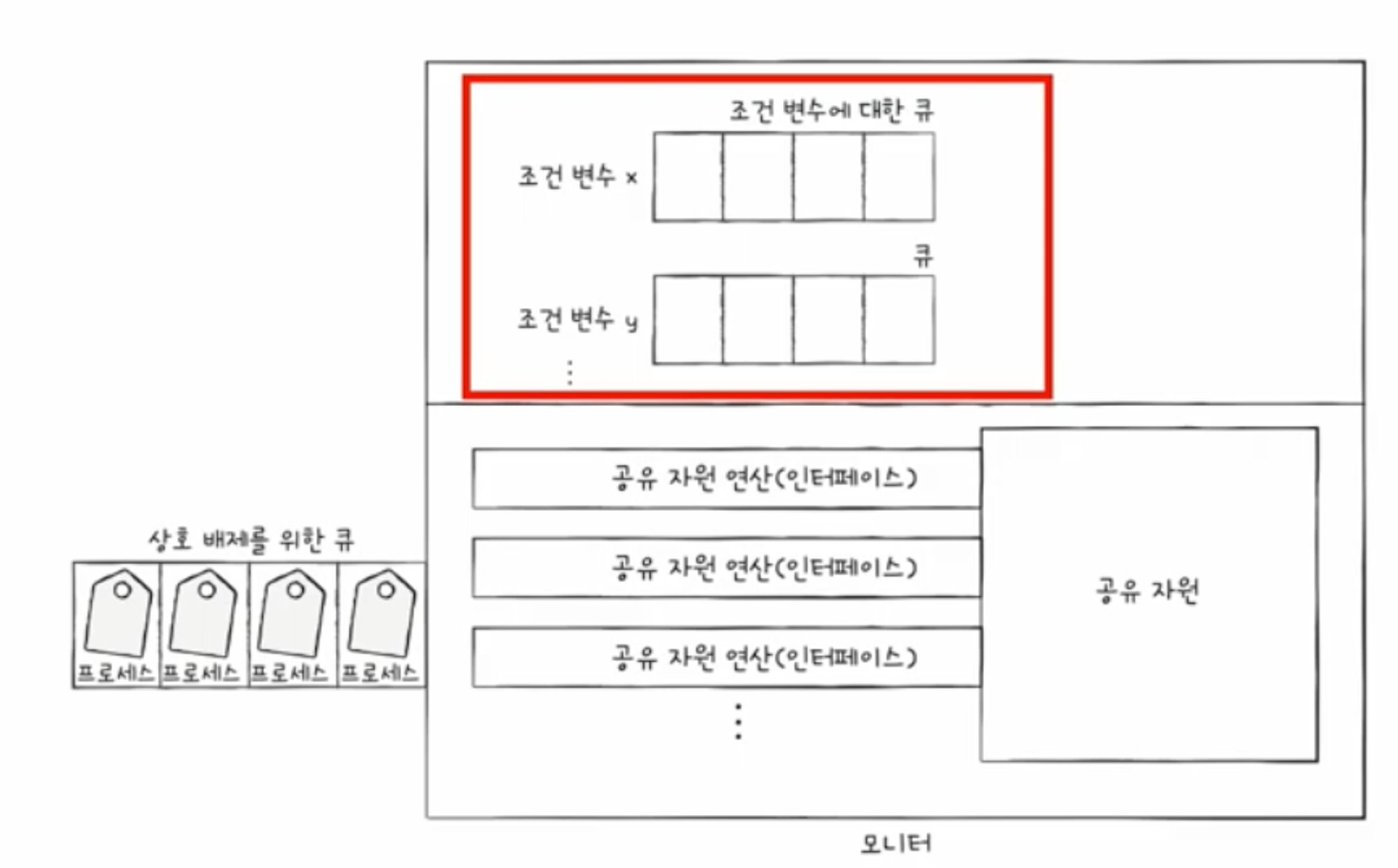 - shared resource: 여러 프로세스 혹은 쓰레드가 공유하는 자원