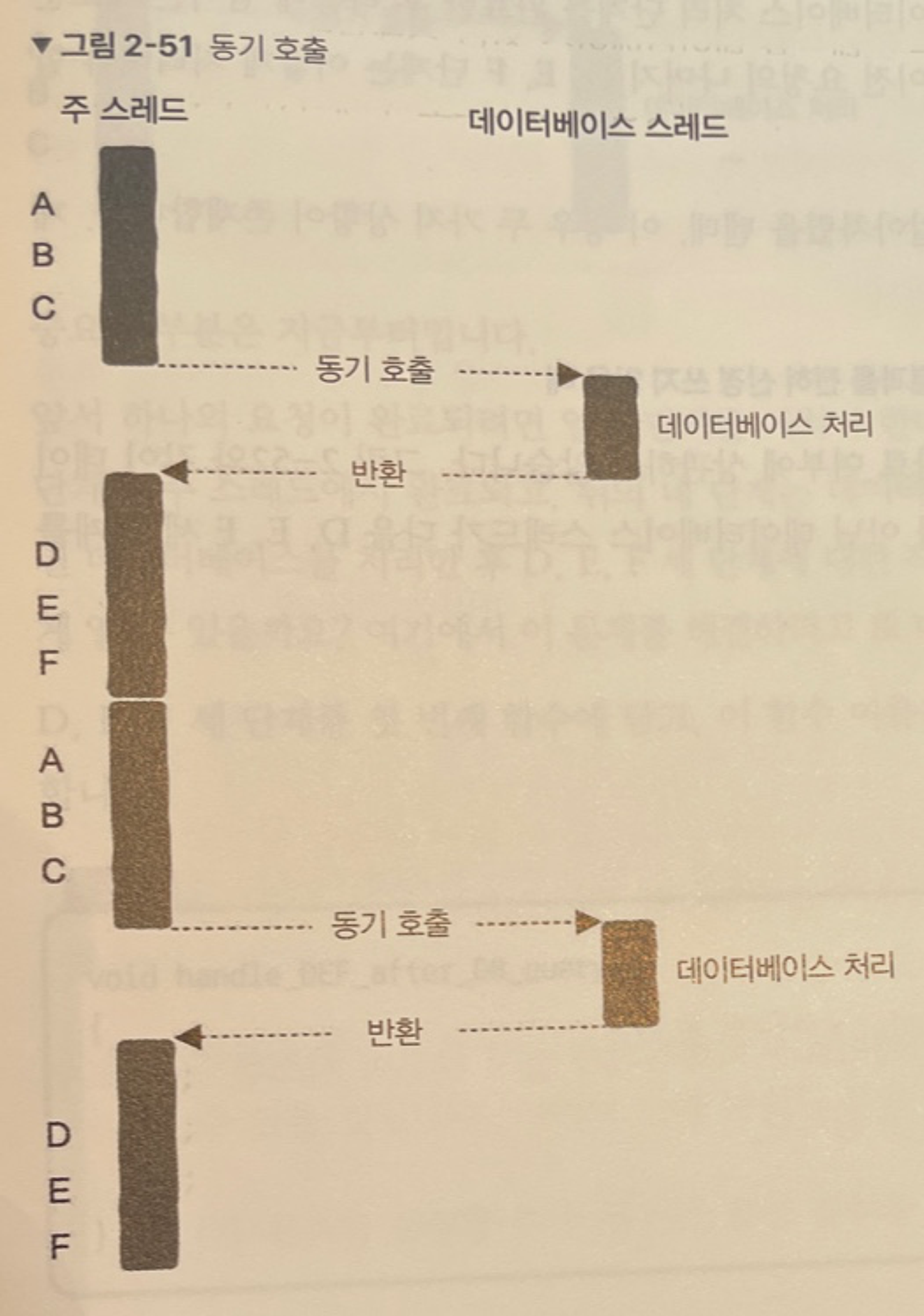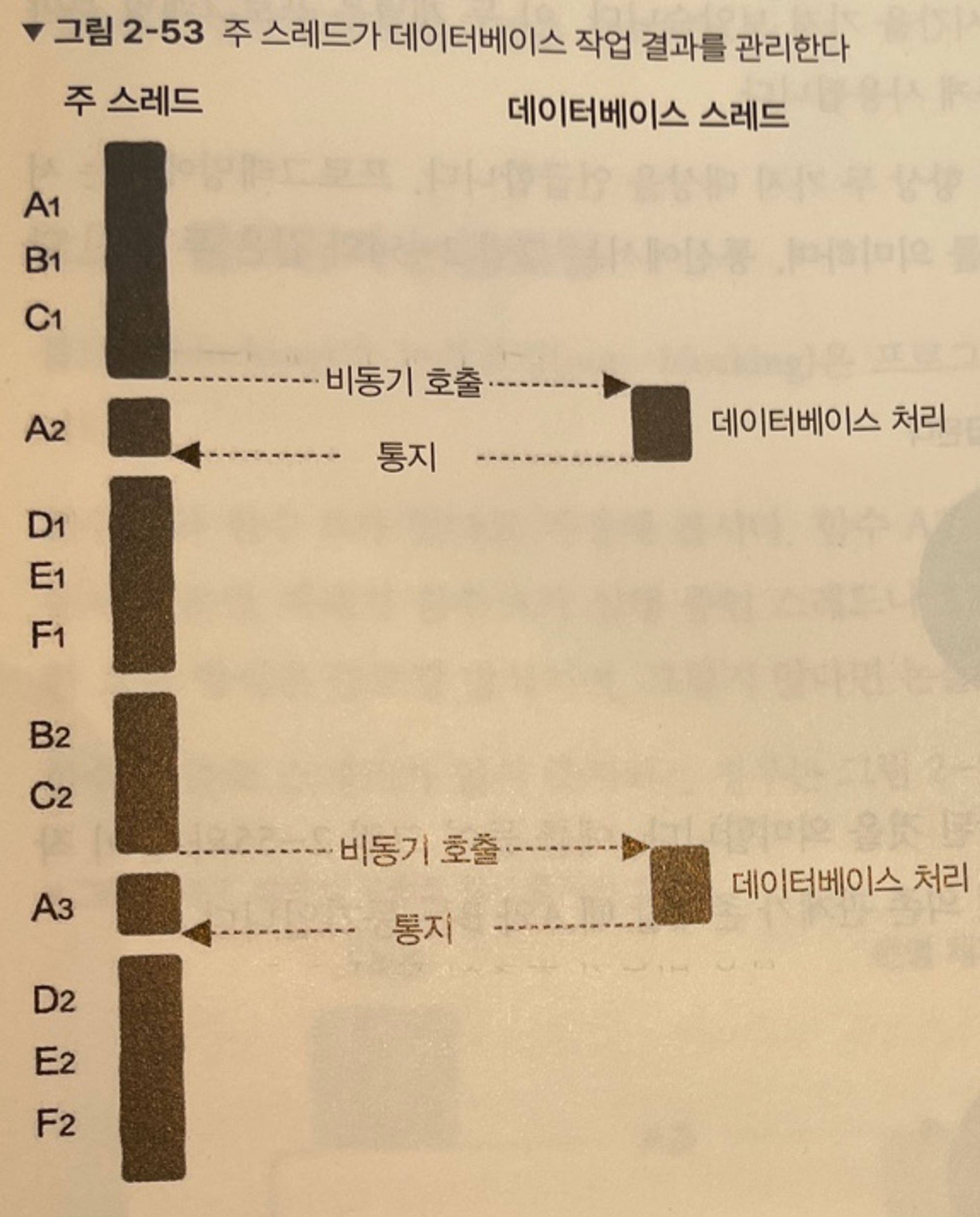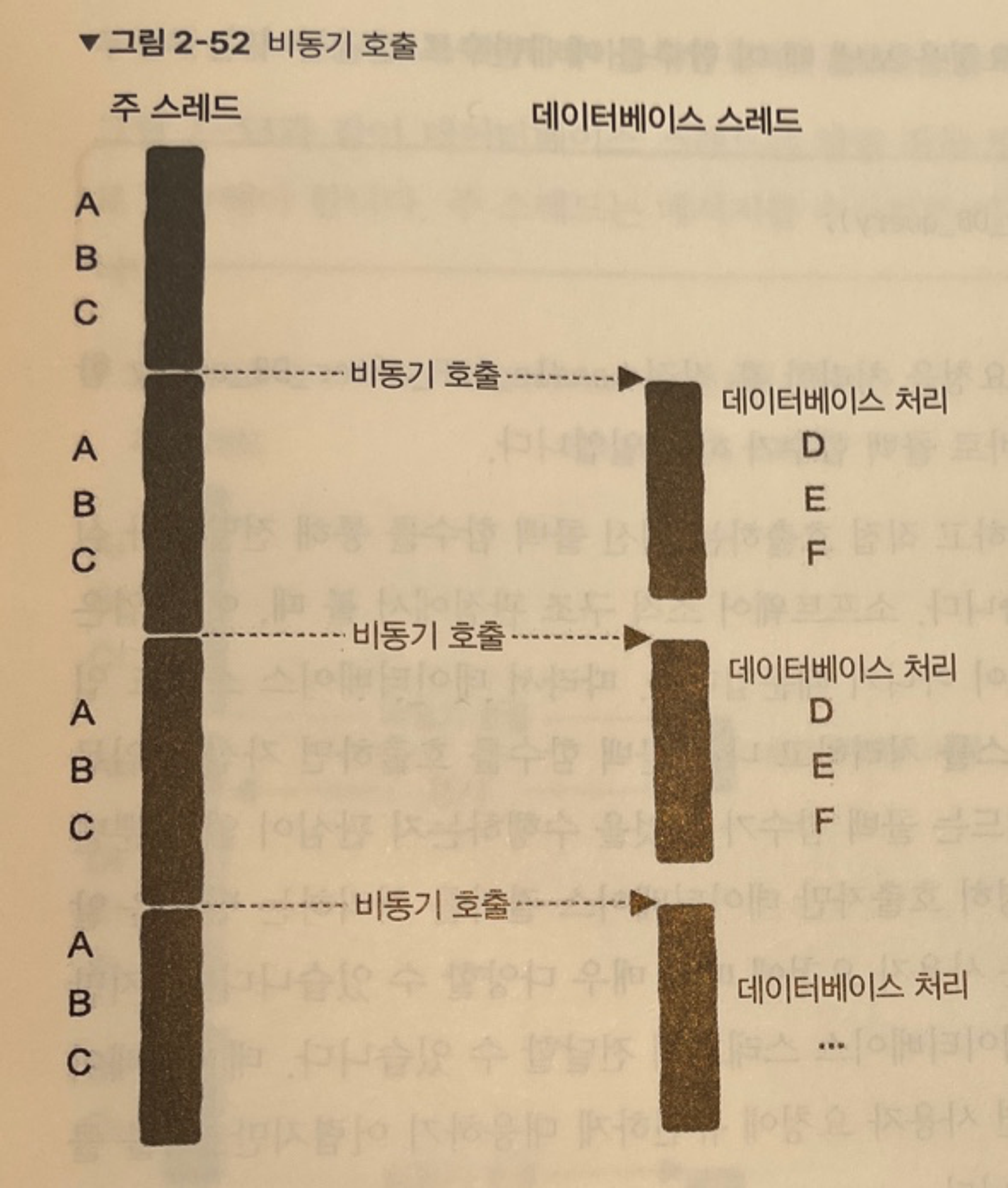 - 데이터베이스 스레드가 D, E, F 세 단계를 자체적으로 직접 처리