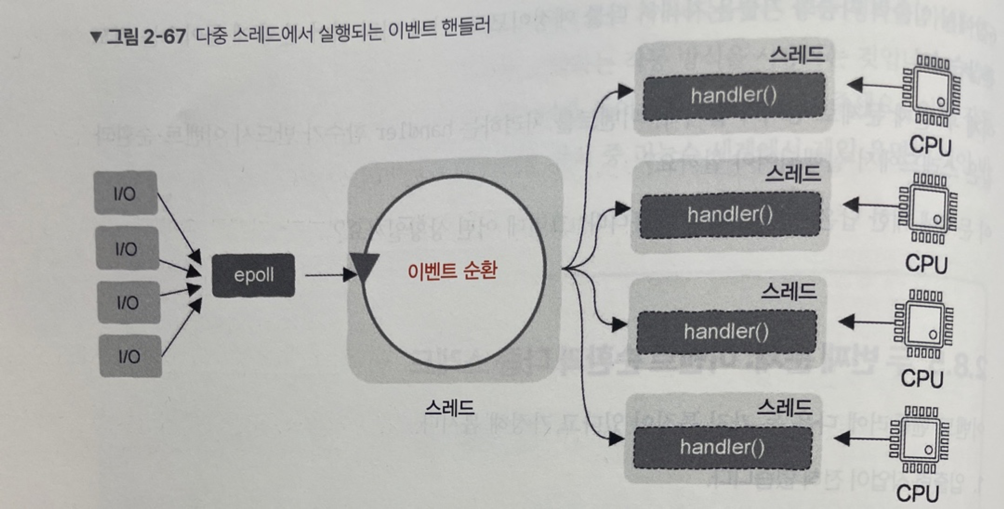 - 이벤트 loop은 요청을 받은 후 우리가 구현한 handler 함수를 코루틴에 담아 스케쥴링과 실행을 위해 각 작업자 스레드에 배포
