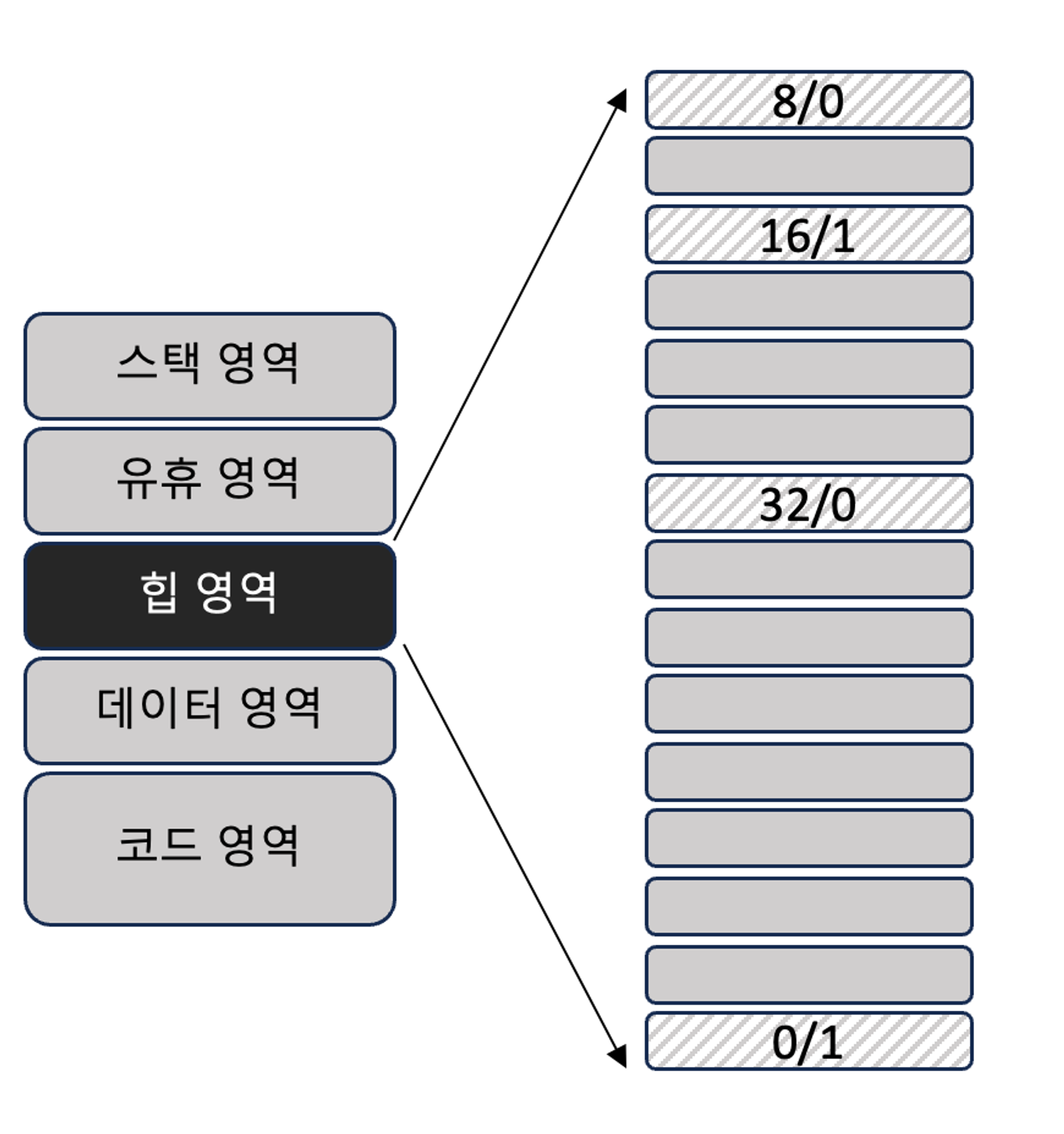 - 16/1: 할당된 메모리 조각 크기가 16바이트를 의미