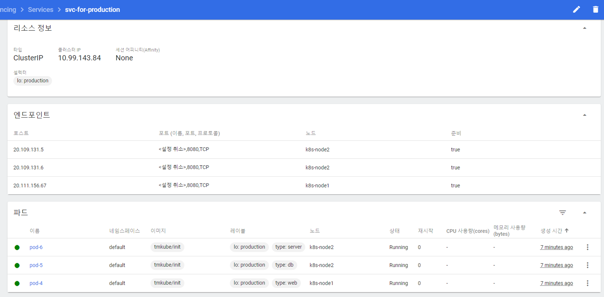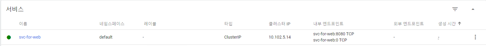 - 서비스에 clusterIP가 할당됨