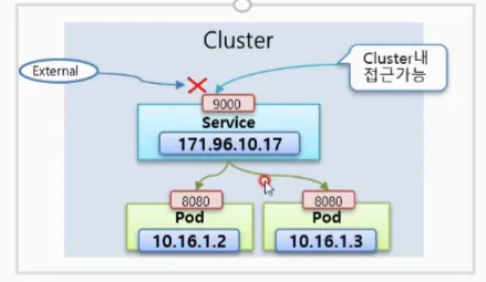 - Cluster 내에서 접근 가능