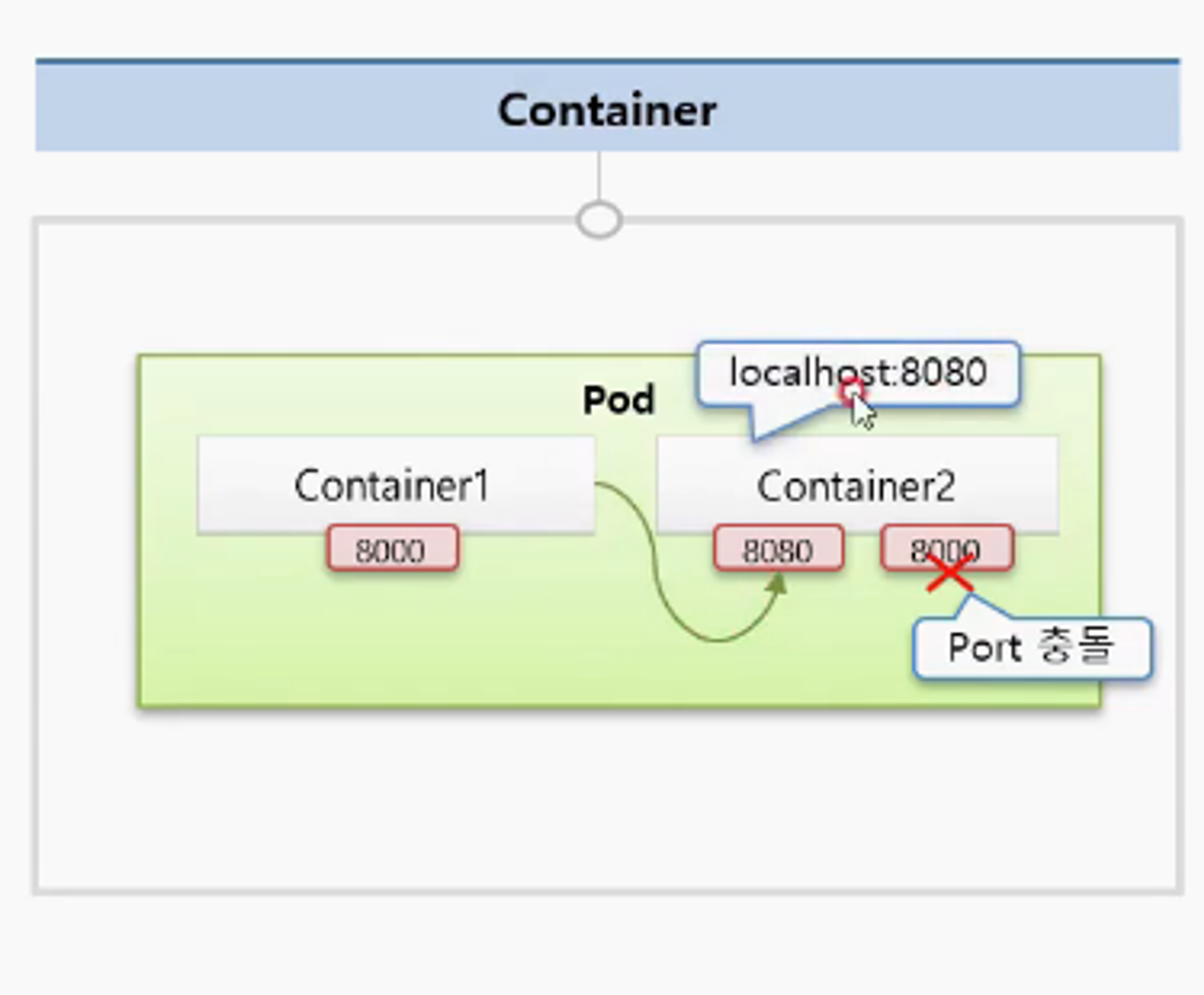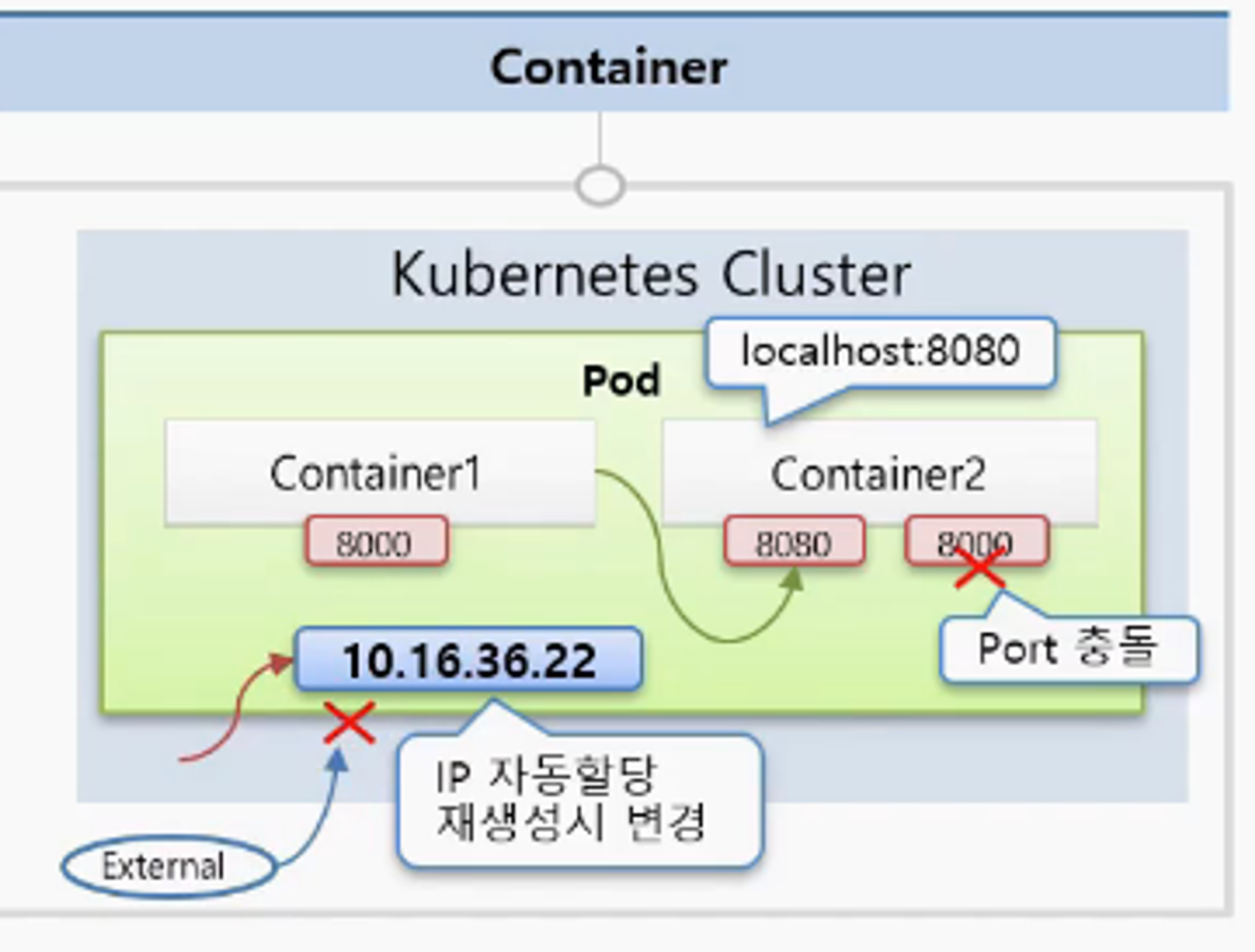 - 쿠버네티스에 할당된 모든 Node에 똑같은 Port가 할당됨