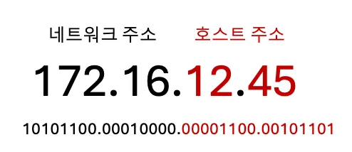 - 아래는 네트워크 주소가 16비트 , 호스트 주소가 16비트인 IP 주소의 예시