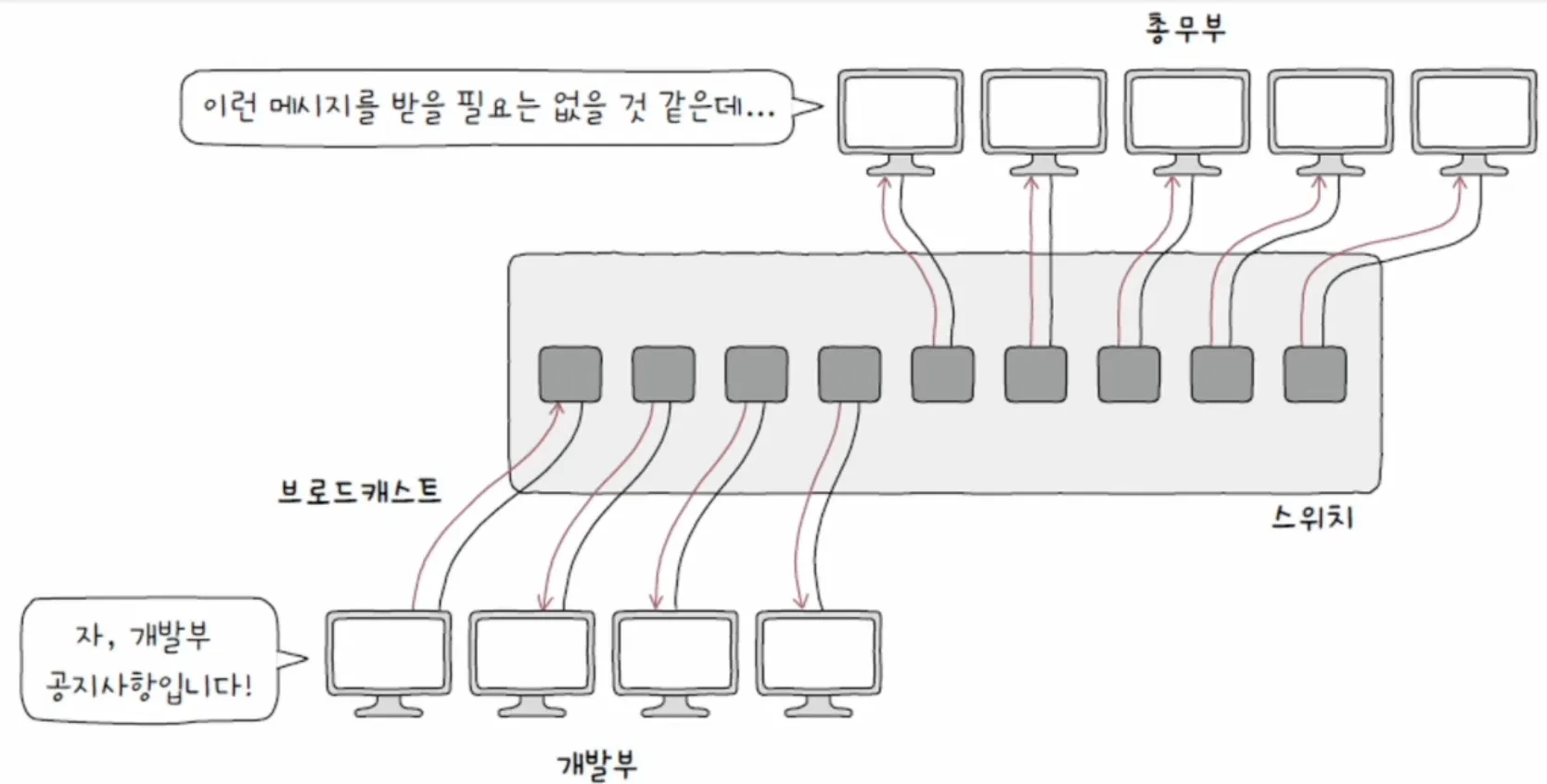 다만 호스트의 주소 공간을 모두 사용할 수 있는 것은 아님. 호스트 주소가 전부 0인 IP 주소는 해당 네트워크 ㅈ체를 의미하는 네트워크 주소로 사용되고, 호스트 주소가 모두 1인 IP 주소는 브로드캐스트를 위한 주소로 사용됨
